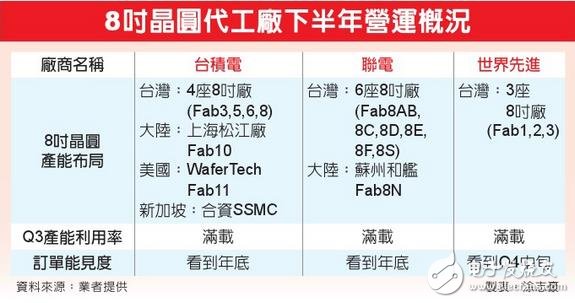 以8吋晶圆代工厂世界先进而言,第三季大尺寸及中小尺寸的LCD驱动IC投片量均较上季明显回升,电源管理IC则受惠于国际IDM大厂扩大委外,加上新跨足的指纹辨识IC代工订单快速涌入,吃掉了不少产能,法人看好世界先进下半年营收表现。