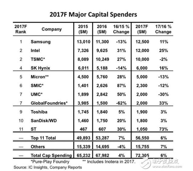 再者,根据研调机构IC Insights的最新统计,2016年全球12吋晶圆厂产能,三星以22%市占率位居第一名,台积电与海力士并列第三,市占率13%。这是三星能力的另一个体现。